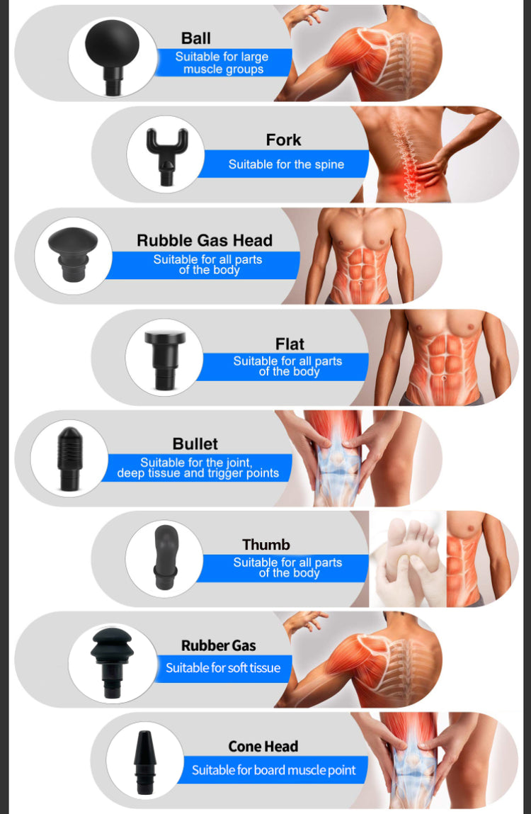 Every muscle group is different, and with 8 different massage head attachments, the Booster ensures that you provide just the right type of recovery that your sore muscles need.